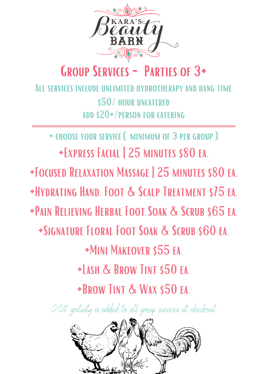 * A 20% gratuity is added to all group services at time of checkout. *